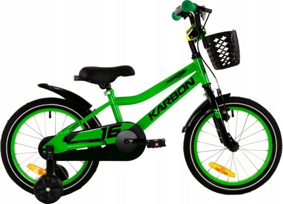 ROWER DZIECIĘCY 16 KARBON COMET LIMONKOWY ODKRĘCANE KÓŁKA BOCZNE ZIELONY